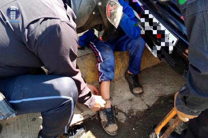 La acción se registró en la colonia Barrio Alto, donde agentes de Tránsito y Movilidad brindaron atención ante una denuncia, donde al parecer un niño se encontraba encadenado de un pie, por lo que se trasladaron al lugar.