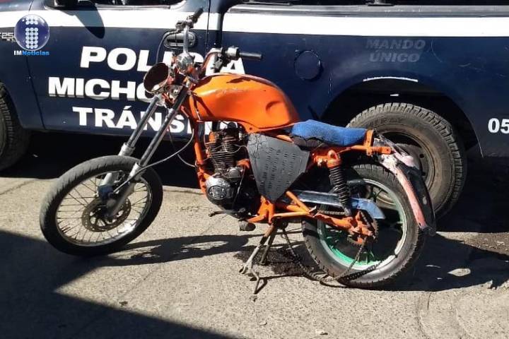 Agentes de la Policía Michoacán realizaban labores de vigilancia para la disuasión del delito sobre la colonia Los Pinos, donde ubicaron el vehículo de la marca Italika, el cual tiene el número de identificación esmerilado.