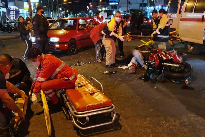Una pareja que viajaba a bordo de una motocicleta de pista resultó con varias lesiones de consideración al impactarse contra un automóvil de color blanco que tras lo ocurrido se dio a la fuga con rumbo desconocido.