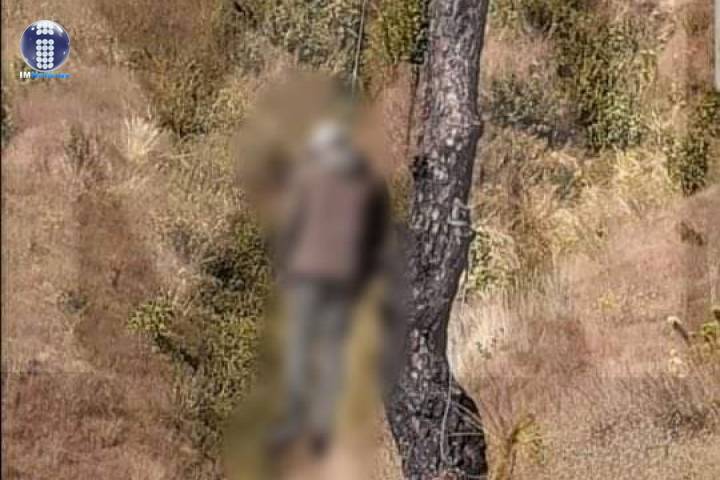 Un hombre sin vida fue encontrado pendiente de una soga al cuello en un pino en las faldas del cerro de Jicalán, en el municipio de Uruapan.
