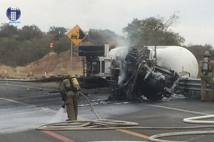 Un tractocamión-pipa, el cual transportaba amoniaco, volcó sobre la autopista Pátzcuaro-Cuitzeo, dentro del municipio de Copándaro, y como resultado la cabina ardió en llamas y su ocupante murió.