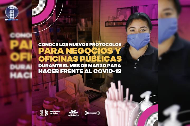NOTICIAS 01/03/2021En Michoacán, nuevas medidas para reactivar la economía sin relajar las medidas de prevenciónA partir de este mes, Michoacán entró en una nueva etapa que tiene como objetivo lograr la apertura gradual del sector económico, pero sin relajar las medidas implementadas para hacer frente al COVID-19.