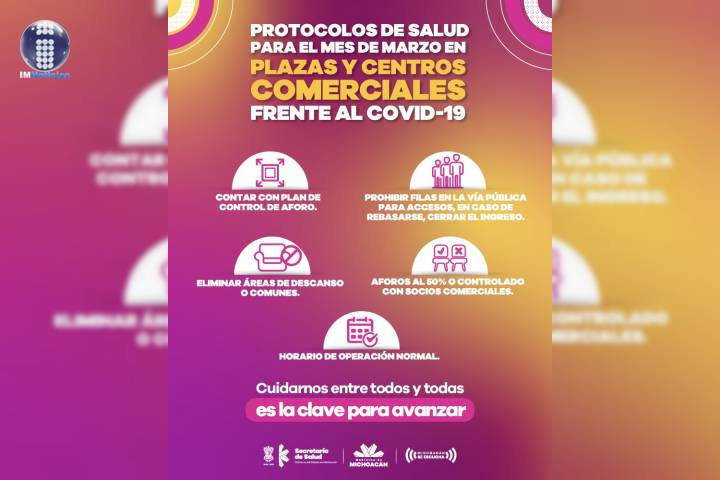 NOTICIAS 02/03/2021Plazas y centros comerciales, con medidas especiales para contener el COVID-19En la nueva etapa en la que entró Michoacán para lograr la apertura gradual del sector económico sin relajar las medidas contra el COVID-19, las plazas y centros comerciales podrán abrir sus puertas de manera normal, pero atendiendo protocolos que eviten la propagación del virus.