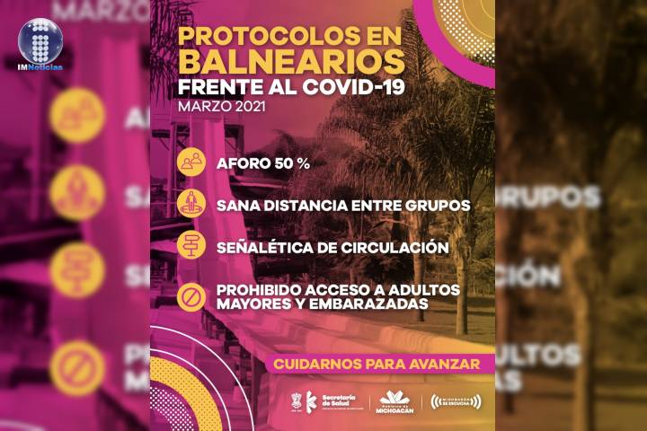 NOTICIAS 03/03/2021En Michoacán, balnearios deben funcionar al 50% de su capacidad En este mes de marzo, de acuerdo con los nuevos lineamientos emitidos por la Secretaría de Salud para lograr la apertura gradual del sector económico, los balnearios de Michoacán deberán cumplir estrictas medidas de prevención para su funcionamiento.