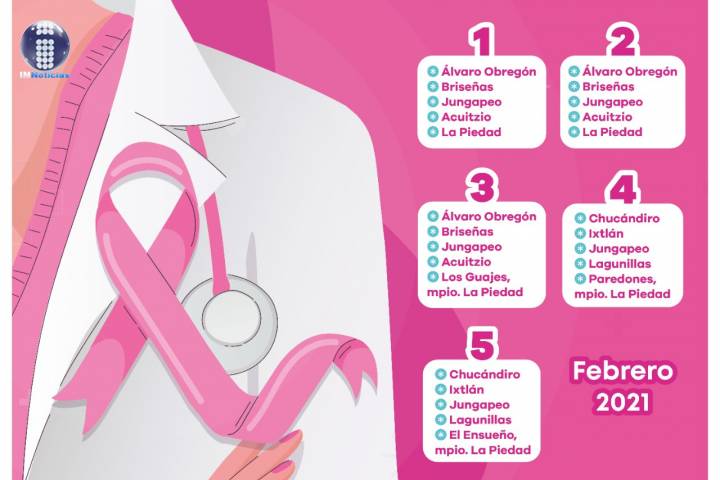 En la semana del 1 al 5 de febrero estarán en Álvaro Obregón (1-3), Briseñas (1-3), Jungapeo (1-5), Acuitzio (1-3), La Piedad (1-2), Ixtlán (4-5), Chucándiro (4-5) y Lagunillas (4-5).