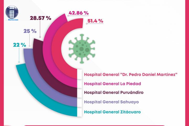 El hospital que mayor demanda registra es el General de Uruapan, "Pedro Daniel Martínez", con 51.4; seguido por los de La Piedad, 42.86; Puruándiro, 28.57; Sahuayo, 25 ... Ver más...