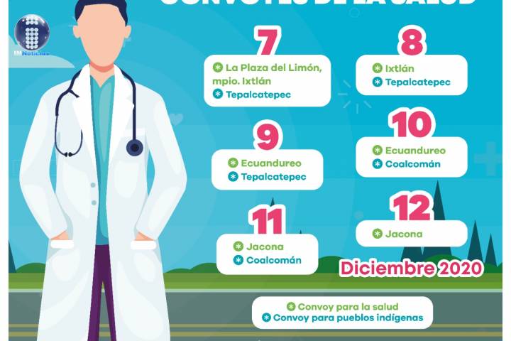 NOTICIAS 06/12/2020Acercan SSM servicios médicos gratuitos a través de Convoyes de la Salud La Secretaría de Salud de Michoacán (SSM), acercará servicios médicos gratuitos a comunidades indígenas o de difícil acceso a través de los Convoyes de la Salud y de Pueblos Indígenas, del 7 al 12 de diciembre.