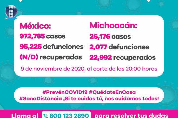 NOTICIAS 07/11/2020Son 2 mil 61 defunciones por COVID-19 en Michoacán
