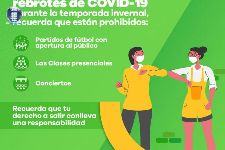 NOTICIAS 26/10/2020Continúan restricciones en balnearios y lugares recreativos en Michoacán En la Nueva Convivencia las personas que asistan a balnearios y lugares recreativos deben de considerar que el aforo en este tipo de sitios está definido por el comportamiento de la epidemia y la bandera de riesgo de cada uno de los municipios, en la que roja es riesgo máximo; amarilla, riesgo alto; verde, riesgo intermedio y blanca, riesgo controlado.