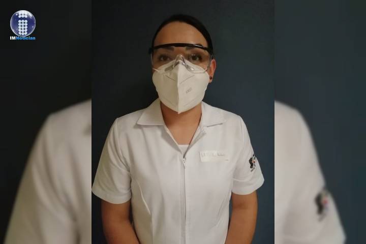 La trabajadora de la Secretaría de Salud de Michoacán (SSM), forma parte del equipo multidisciplinario encargado de atender a los pacientes que llegan al área COVID-19 del hospital.