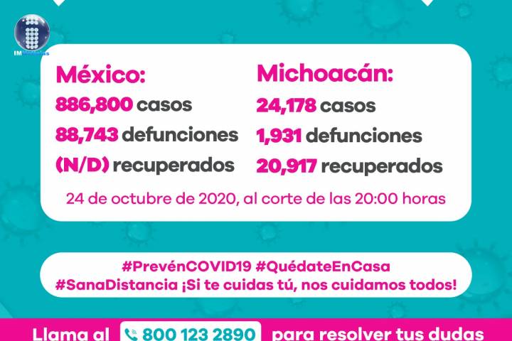 NOTICIAS 20/10/2020Se eleva a 1873 defunciones por COVID-19 en MichoacánEn la Unidad de Inteligencia Epidemiológica y Sanitaria (UIES), se han recibido un total de 55 mil 847 notificaciones de enfermos de vías respiratorias a descartar coronavirus, 31 mil 74 cumplieron con definición operacional resultando negativas a COVID-19, es decir, no tienen el virus.