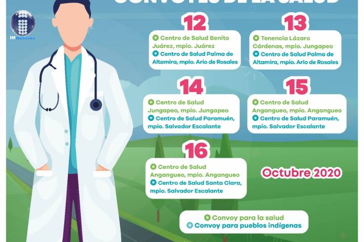 El convoy de la salud de Pueblos Indígenas estará el 12 y 13 centro de Salud Palma de Altamira, municipio de Ario de Rosales; así el 14 y 15 en Paramuén y 16 Santa Clara, ambos pertenecientes a Salvador Escalante.