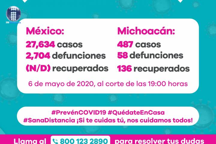 NOTICIAS 06/05/2020Suman 58 defunciones por COVID-19 en Michoacán En la UIES ESTATAL, se han recibido un total de 2 mil 533 notificaciones de enfermos de vÃas respiratorias, a descartar coronavirus, 1 mil 700 cumplieron con definición operacional resultando negativas a COVID-19, es decir, no tienen el virus.