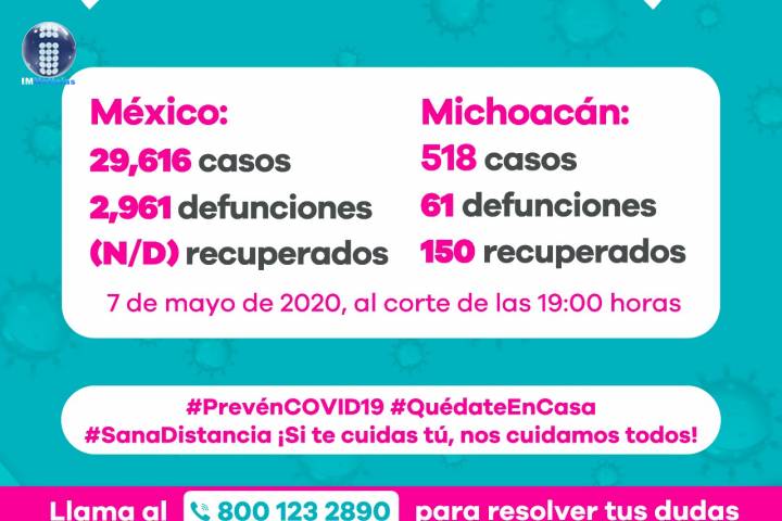 NOTICIAS 07/05/2020Michoacán, con 518 casos y 61 defunciones por COVID-19En la UIES ESTATAL, se han recibido un total de 2 mil 636 notificaciones de enfermos de vÃas respiratorias, a descartar coronavirus, 1 mil 700 cumplieron con definición operacional resultando negativas a COVID-19, es decir, no tienen el virus.