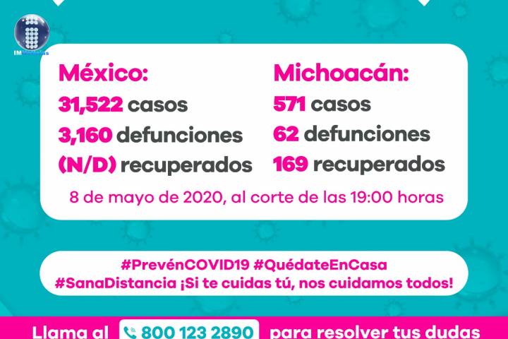 NOTICIAS 08/05/2020Acumula Michoacán 571 casos y 62 defunciones por COVID-19En la UIES ESTATAL, se han recibido un total de 2 mil 776 notificaciones de enfermos de vÃas respiratorias, a descartar coronavirus, 1 mil 813 cumplieron con definición operacional resultando negativas a COVID-19, es decir, no tienen el virus.