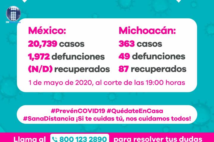 NOTICIAS 30/04/2020Suman 46 defunciones por COVID-19 en Michoacán En la UIES ESTATAL, se han recibido un total de 1 mil 997 notificaciones de enfermos de vÃas respiratorias, a descartar coronavirus, 1 mil 328 cumplieron con definición operacional resultando negativas a COVID-19, es decir, no tienen el virus.