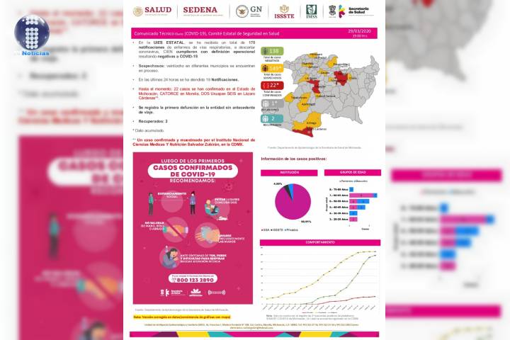 NOTICIAS 30/03/2020Luego de 24 horas Michoacán se mantiene en 22 casos por coronavirus