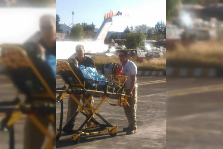 De acuerdo al reporte médico, el paciente presenta una lesión grave por un accidente vehicular, por lo cual se solicitó el apoyo de la Dirección de Servicios Aéreos del Gobierno Estado.