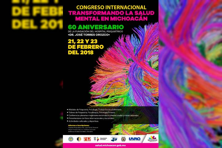 NOTICIAS 11/02/2018SSM, por la transformación de la salud mental en Michoacán Del 21 al 23 de febrero, el Hospital Psiquiátrico "Dr. José Torres Orozco" de Secretaría de Salud de Michoacán (SSM) realizará en el marco del 60 aniversario de su fundación el Congreso Internacional "Transformando la Salud Mental de Michoacán".