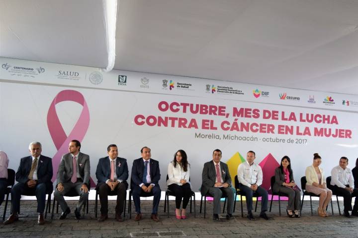 NOTICIAS 16/10/2017Conmemora SSM el Mes de Lucha contra el Cáncer en la MujerCon la representación del Gobernador Silvano Aureoles Conejo, este lunes el titular de la Secretaría de Salud de Michoacán (SSM), Elías Ibarra Torres, encabezó el evento conmemorativo de "Octubre: Mes de Lucha contra el Cáncer en la Mujer", en la plaza Morelos de la capital michoacana, donde se instaló una Feria de la Salud con módulos de información y unidades móviles para realizar estudios de mastografía de manera gratuita.