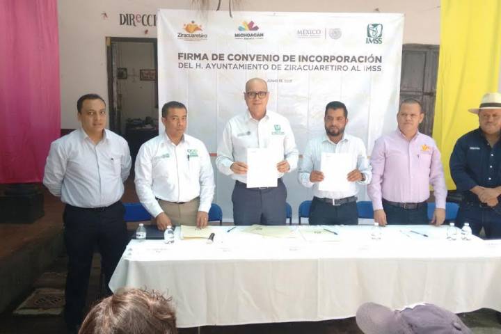 Los signantes, Juan Martín Corona, Presidente Municipal de Ziracuaretiro y el Delegado del IMSS en Michoacán Román Acosta Rosales celebraron este contrato en un acto protocolario el día de ho... Ver más...