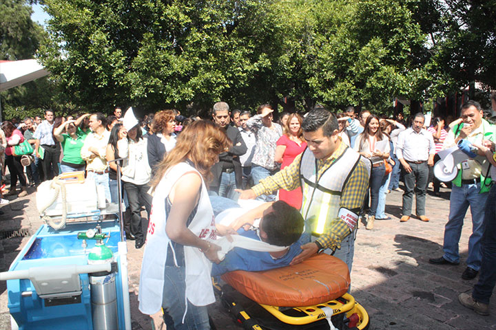 NOTICIAS 18/09/2015IMSS realiza simulacro de sismo Con la finalidad de recordar los hechos ocurridos en el sismo de 1985, la Delegación Regional del Instituto Mexicano del Seguro Social (IMSS) en Michoacán realizó un simulacro en la sede delegacional con la participación de más de 700 personas.