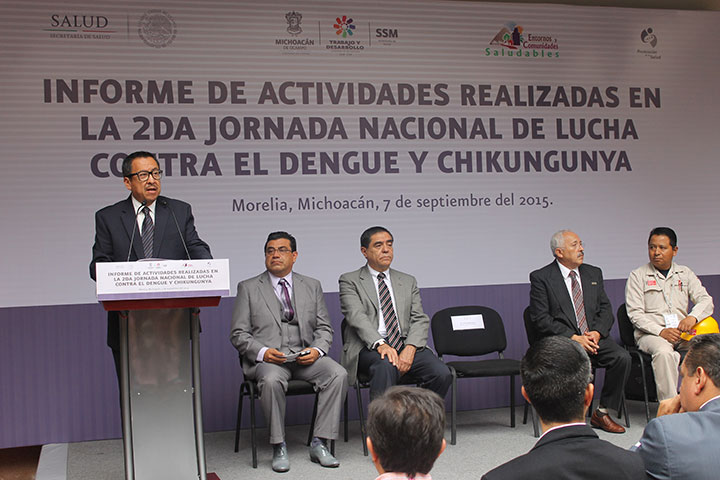 El secretario de Salud en Michoacán, Carlos Aranza Doniz, dio a conocer a través de un informe los resultados de las actividades realizadas durante la Segunda Semana Nacional de Lucha contra el Dengue y Chikungunya, donde destacó la participación de 120 instituciones entre gubernamentales, no gubernamentales, empresas y Sector Salud, así como la colaboración de 7 mil 200 escuelas de Nivel Básico y Medio Superior.
