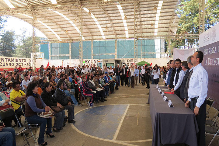 Con la representación del director General del ISSSTE, Sebastián Lerdo de Tejada, y del director de Prestaciones Económicas Sociales y Culturales, Florentino Castro López, el subdirector de Otorgamiento de Créditos, Jorge Erick Pérez Pérez, y el delegado del ISSSTE en Michoacán, Israel Patrón Reyes, entregaron 400 Préstamos Personales a igual número de afiliados a la Institución en este municipio.