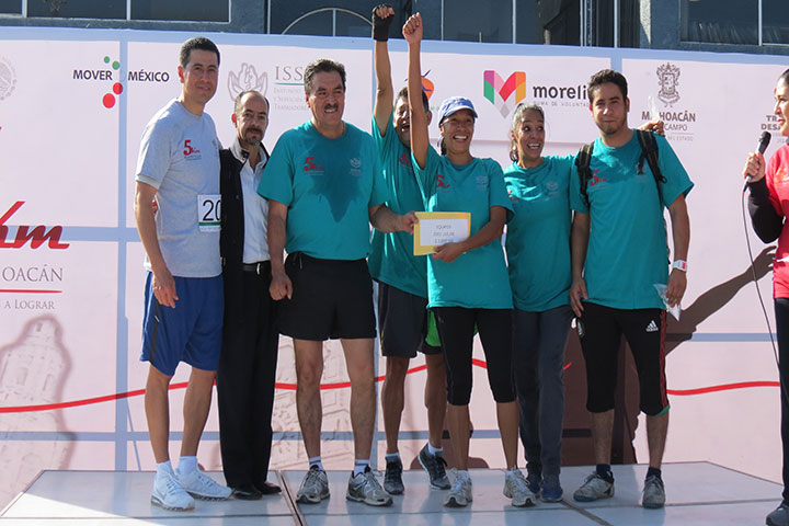 Con el objetivo de impulsar la práctica del deporte y fortalecer el tejido social en el estado, en cumplimiento de los compromisos adquiridos por el gobierno federal con los michoacanos, bajo los auspicios del Instituto de Seguridad y Servicios Sociales de los Trabajadores del Estado, esta mañana se realizó la Carrera Atlética de 5 kilómetros que, con la participación de más de 500 corredores, arrancó frente a la Catedral y culminó en... Ver más...