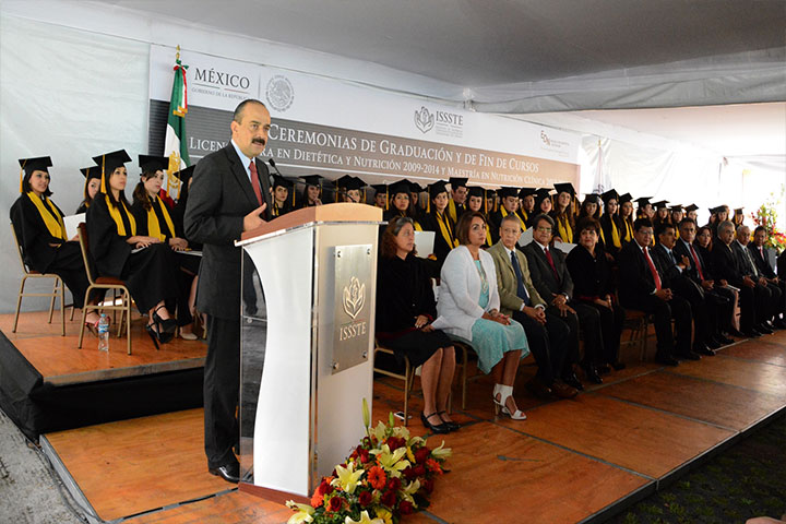 El ISSSTE impulsará la implementación del Modelo Integral de Atención a la Diabetes, como parte de una estrategia nacional, anunció el Director General del Instituto, Sebastián Lerdo de Tejada, durante la ceremonia de graduación de Licenciatura y fin de curso de la Maestría de la Escuela de Dietética y Nutrición, "Dr. José Quintín Olascoaga Moncada".