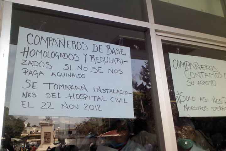NOTICIAS 26/11/2012Trabajadores reanudan actividades en el Hospital Civil