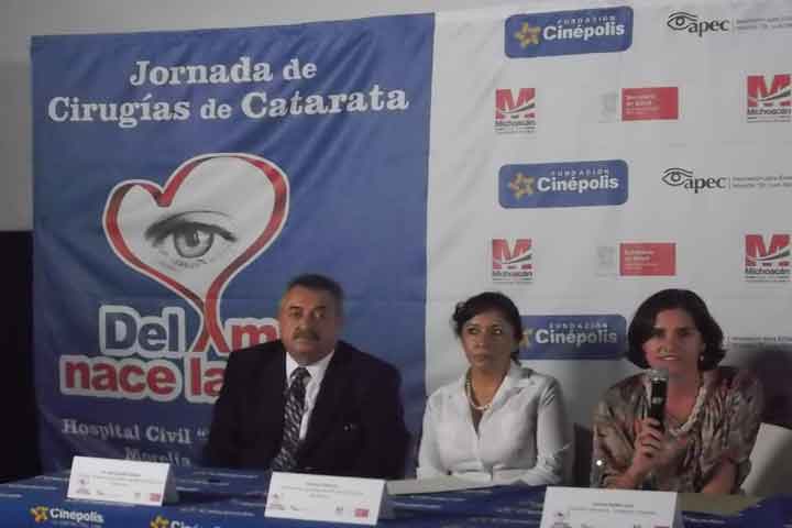 En Michoacán 3 de cada 100 habitantes padecen de cataratas y el tiempo de espera para su atención es de mes y medio a 2 meses, lo anterior lo afirmó el secretario de Salud en la entidad, Rafael Díaz Rodríguez, durante la Novena Jornada en el estado de Cirugía de Cataratas "Del amor Nace la Vista" de Cinépolis la cual prevé atender a 1917 michoacanos al finalizar el año en los 7 años que tiene el proyecto.