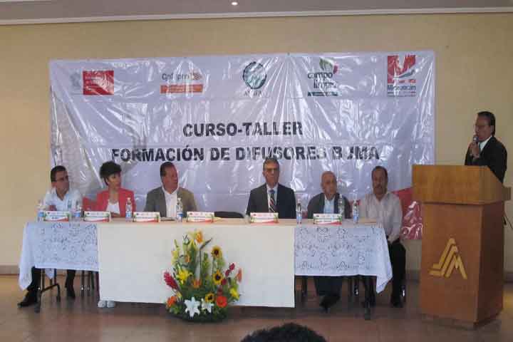 Con el objetivo de capacitar a personal de salud y de otras instituciones a promover el buen uso y manejo de agroquÃmicos en nuestra entidad, asà como dar cumplimiento a las actividades en el Proyecto Reducción de Exposición Laboral por Uso de Plaguicidas, autoridades estatales inauguraron el Curso-Taller "Formación de Difusores BUMA" (Buen uso y Manejo de AgroquÃmicos), que concluye el dÃa miércoles 4 de julio.