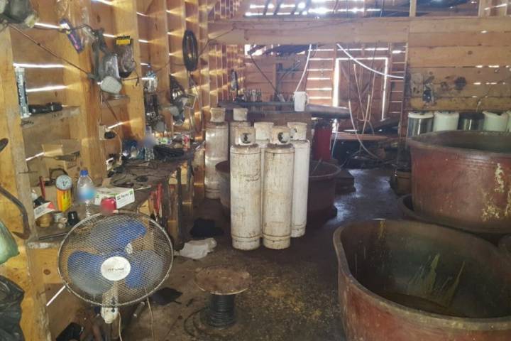 Una denuncia anónima informó a las autoridades sobre la existencia del laboratorio en un predio en la comunidad de Cieneguillas, por lo que las autoridades se trasladaron al lugar y aseguraron la zona.