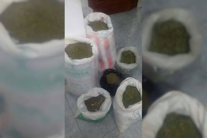 Los agentes de la Policía Michoacán realizaban patrullajes de prevención del delito en la comunidad El Caracol, cuando al transitar sobre una brecha detectaron abandonados costales de yute y un arma de fuego.