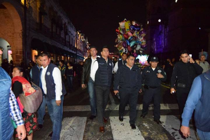 Acompañado del subsecretario de la institución, Carlos Gómez Arrieta, Juan Bernardo Corona recorrió la Avenida Madero para garantizar que la festividad se mantuviera en completa calma.