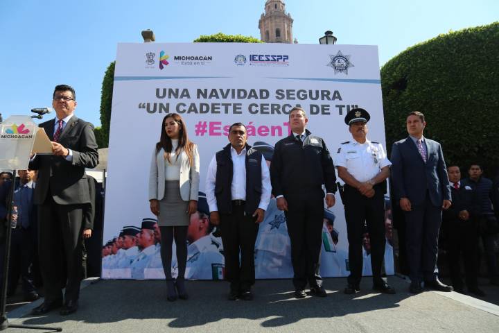 En el centro de Morelia arranco el Programa "Una Navidad segura, un cadete cerca de ti", el cual organizó la Secretaría de Seguridad Pública en coordinación con el Instituto Estatal de Estudios Superiores en Seguridad y Profesionalización policial del Estado de Michoacán.
