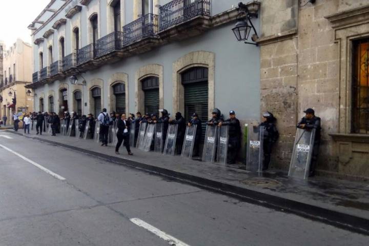 Desde las 8 de la mañana los uniformados instalaron un operativo sobre la avenida Madero, desde el Colegio de San Nicolás hasta el Congreso del Estado.