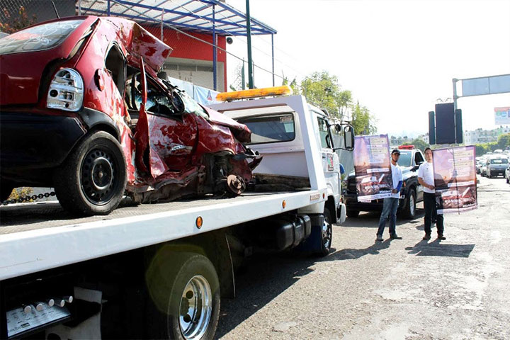 A través de una exposición de vehÃculos siniestrados y entrega de volantes informativos a conductores en el crucero del Libramiento Norte a la altura de Casa de Gobierno, asà co... Ver más...