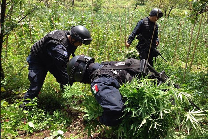A través de un comunicado, la Policía Federal dio a conocer que localizó cuatro terrenos sembrados con marihuana y amapola en una extensión total de mil 175 metros cuadrados, esto en dos operativos, uno en Michoacán y otro en Guerrero.