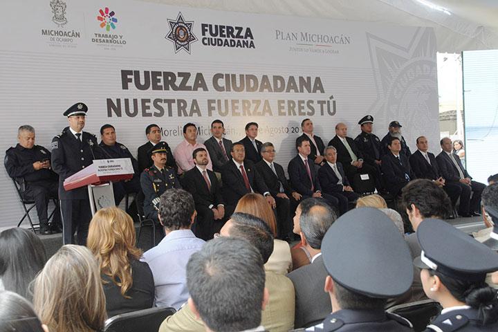 NOTICIAS 18/08/2014En marcha la Fuerza Ciudada, en Morelia la integran 500 elementos500 elementos del Mando Unificado integrarán la Fuerza Ciudadana en Morelia, así lo dio a conocer el titular de la Secretaría de Seguridad Pública, Carlos Hugo Castellanos Becerra, al participar en la puesta en marcha de dicha corporación.