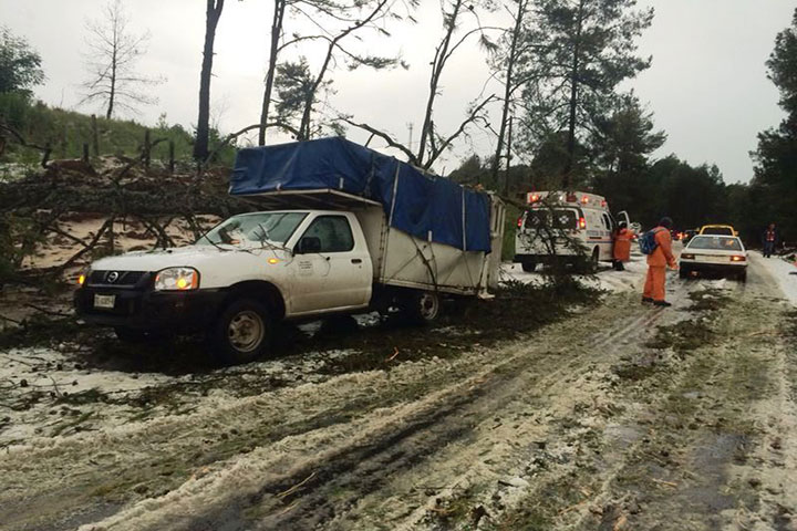 Las fuertes lluvias de las últimas 24 horas en la entidad michoacana provocaron la respuesta inmediata de los elementos de Protección Civil de la región Oeste, quienes trabajaron en coordinación con la Policía Federal para reabrir la circulación de la carretera que conduce a Peribán, la cual quedó prácticamente bloqueada por varios pinos que se vinieron abajo.