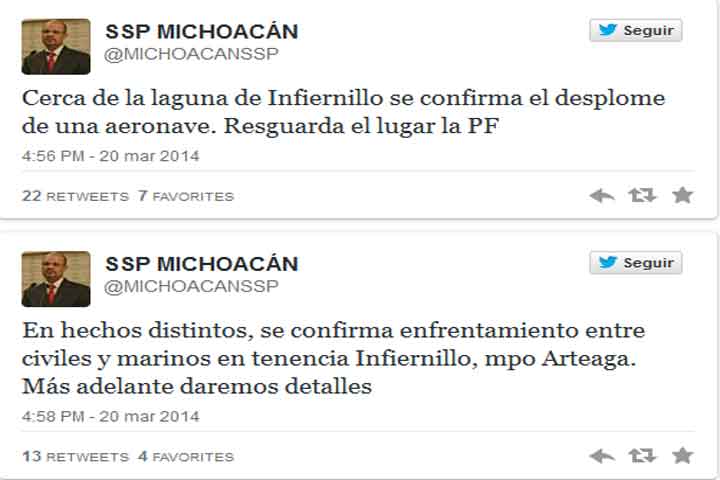 NOTICIAS 20/03/2014Reporta SSP desplome de aronave y enfrentamiento en Infiernillo