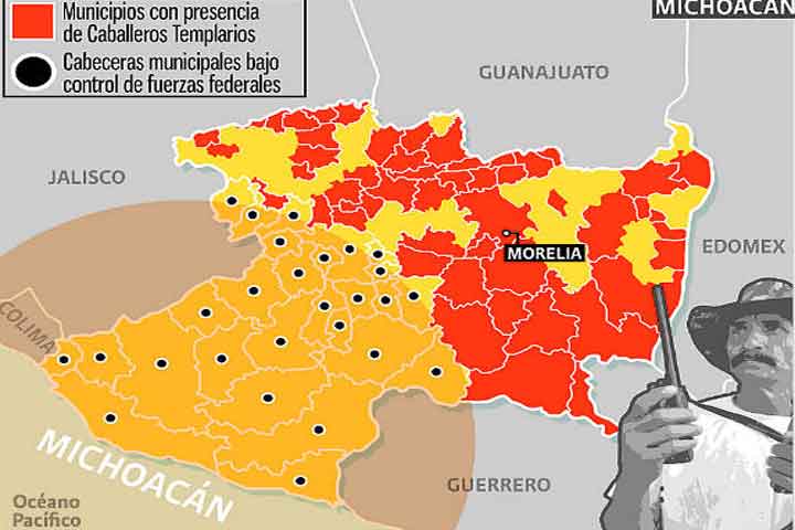 Aunque el conflicto en Michoacán se ha concentrado en 27 municipios en los que se lucha por el exterminio de Los Caballeros Templarios, en realidad este cártel tiene presencia en 51 municipios más, en los que no hay autodefensas ni refuerzos de las Fuerzas Federales.