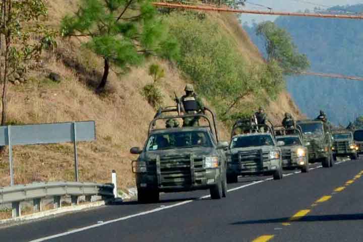 Este domingo por la mañana más elementos del Ejército Mexicano llegaron a Michoacán, ahora ingresaron a esta capital por la carretera Salamanca-Morelia y después se dirigieron rumbo a Tierra Caliente, según trascendió en fuentes cercanas a la milicia. Fue alrededor de las 11:00 horas, que los efectivos castrenses hicieron su aparición, a bordo de camiones Mercedes Benz, camionetas pick-up, vehículos Hummer y algunos tráilers, que e...