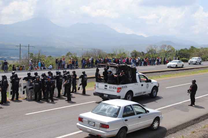 La tarde de este domingo policías estatales y federales replegaron a un nutrido contingente de alumnos de la Escuela Normal Vasco de Quiroga, de Tiripetío, mejor conocidos como "Tiris", quienes secuestraron al menos 11 autobuses en la Autopista Siglo XXI. Con el operativo "antitiris", los oficiales lograron evitar que más ómnibuses fueran despojados por los normalistas, por lo que se establecieron tres filtros para resguardar a las unida...