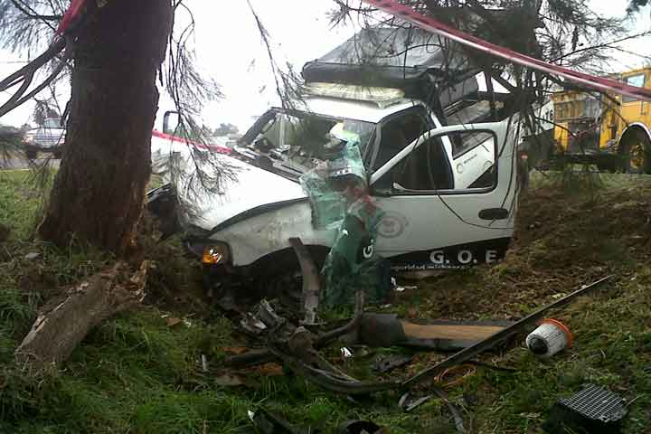 Dos elementos de la Secretaría de Seguridad Pública del Estado, quedaron seriamente lesionados luego de que la patrulla en la cual viajaban de esta Capital hacia su lugar de trabajo, chocara contra un árbol.