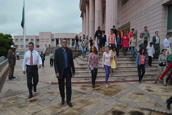 A 28 años del aniversario del sismo que se registró en la Ciudad de México, el gobierno de Michoacán, a través de la Dirección de Protección Civil de la Secretaría de Seguridad Pública, realizó macrosimulacro en las instalaciones del Supremo Tribunal de Justicia.