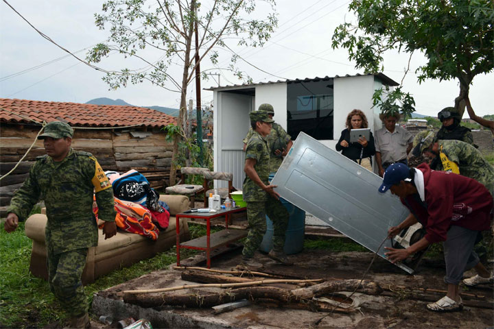 En más de 20 viviendas elementos de la Secretaría de la Defensa Nacional (Sedena) hicieron labores de limpieza, dentro del programa DN - III que fue activado en las colonias Ciudad Jardín y Veintitrés de Marzo, a raíz de la tromba que azotó esta capital el martes y el miércoles pasados. En dichos asentamientos trabajaron arduamente decenas de efectivos castrenses, quienes con palas y carretillas sacaban el lodo de las casas, muchas d...