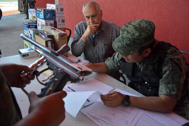 Con 7 mil 650 pesos entregados a los interesados, arrancaron las primeras horas del canje de armas, en las instalaciones del Auditorio Bicentenario, de Morelia, ubicado en las inmediaciones de Torreón Nuevo, a donde acudió una persona a cambiar un revólver antiguo, de los años 20; otra que canjeo una Colt MK-IV-serie 80 de acero inoxidable y una más que fue a dejar su pistola de gotcha.